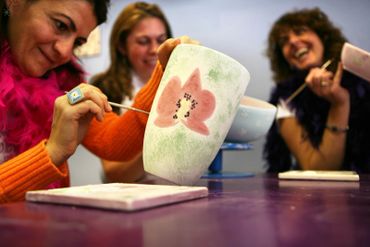 Call us to reserve, for you and your pals, a super fun friends night out away from the grind, the house, stresses & kids! Or bring the kids too, if that's your vibe. We will book you in on any favorite daytime or evening for you, our schedule permitting! Afternoons are available too so feel free to ask! Remember, we NEVER have studio or painting fees so you pay only for your pottery and sales tax. For children's birthday parties CLICK HERE