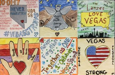 Our studio was contacted to support the cause, donate what we could, and insure that the vision included messages of healing, love, compassion, peace and prayers for humanity along with other expressions of joy, sorrow and homage for the victims and the community of Las Vegas. These designs were to be painted by the public and installed into the garden for a mosaic tile mural display. In multiple painting events around the valley, nearly 4000 tiles were painted and ultimately installed. Emotions overflowed from many of the victim's families, local citizens and visitors that expressed their mindsets through their artwork. An incredibly beautiful array of messages for love and healing came forth. All tiles were lovingly finished through our studio and then delivered to the teams responsible for installation. This charitable contribution of our time, talent, materials and execution continue to this day - to hold a place that is THE most significant, most important art that our studio has ever processed. It was an absolute honor to be able to be a part of this wonderful space that has now become a permanent memorial site here in the downtown area of Las Vegas. We are thankful to have been a part.